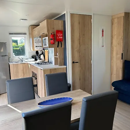 Вилла Mobil'Home - Camping Les Charmettes с 2 спальнями предлагает комнаты с диваном, кофеваркой и зоной отдыха, а также кухней. Здесь есть 1 ванная комната с отдельным туалетом и душем.